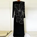 This blend offers a comfortable stretch, durability, and a smooth drape, making it perfect for evening wear. If you have the exact fabric details, let me know and I can update this accordingly!