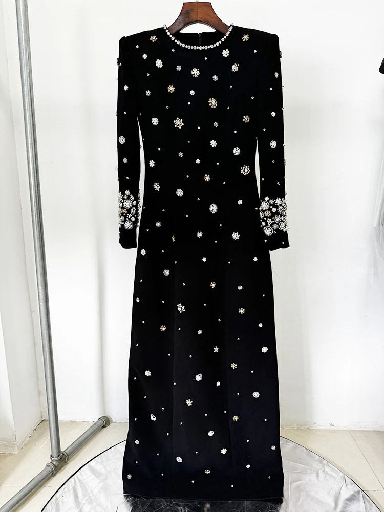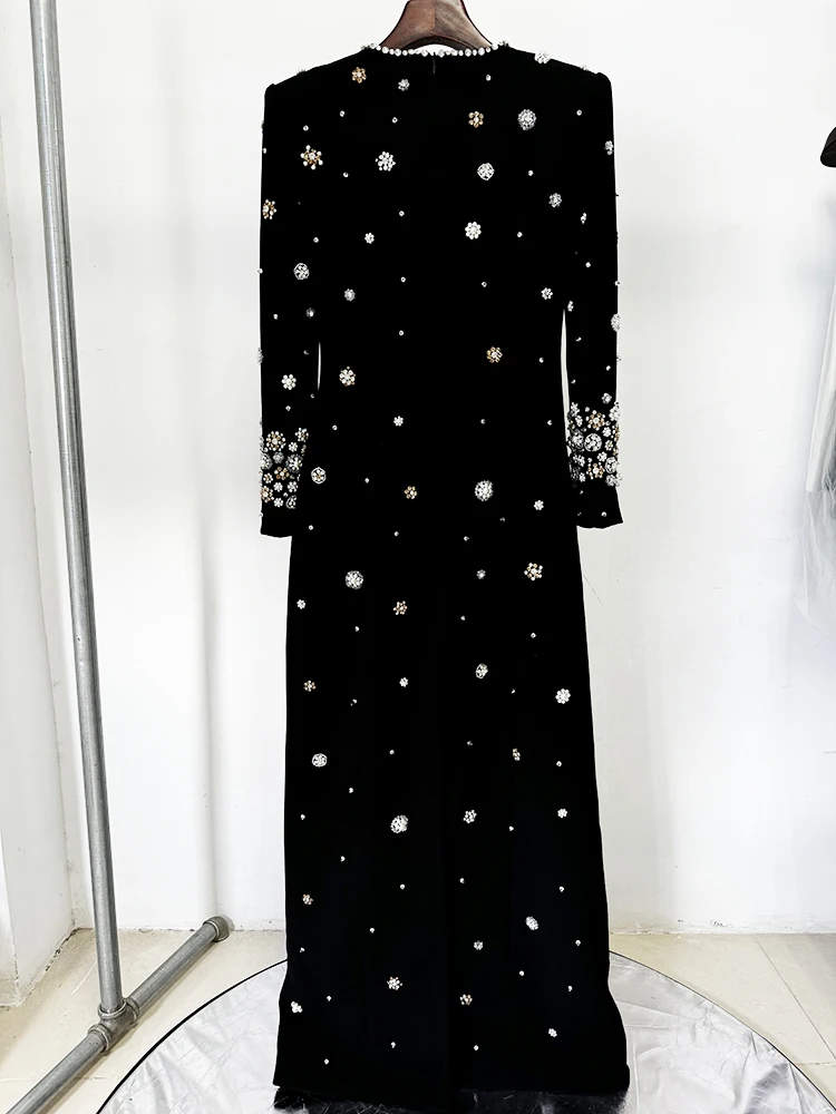 Turn heads at any event with our elegant Beaded Party Maxi Dress, featuring intricate beadwork and a flowing silhouette for a timeless look. Perfect for formal gatherings and special occasions.