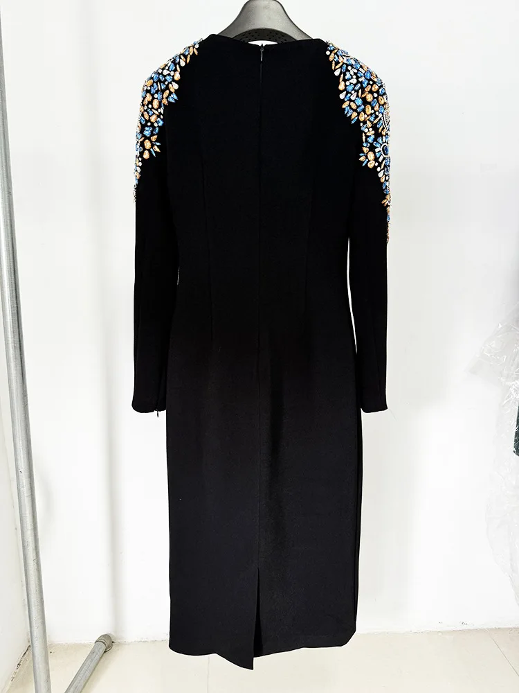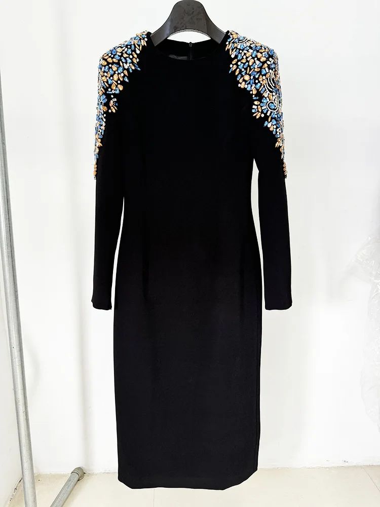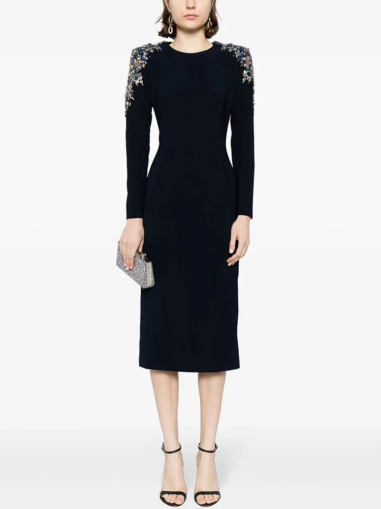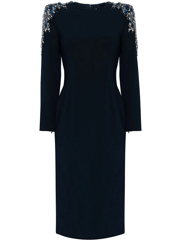 Embroidered Round Neck Long Sleeve Dresses