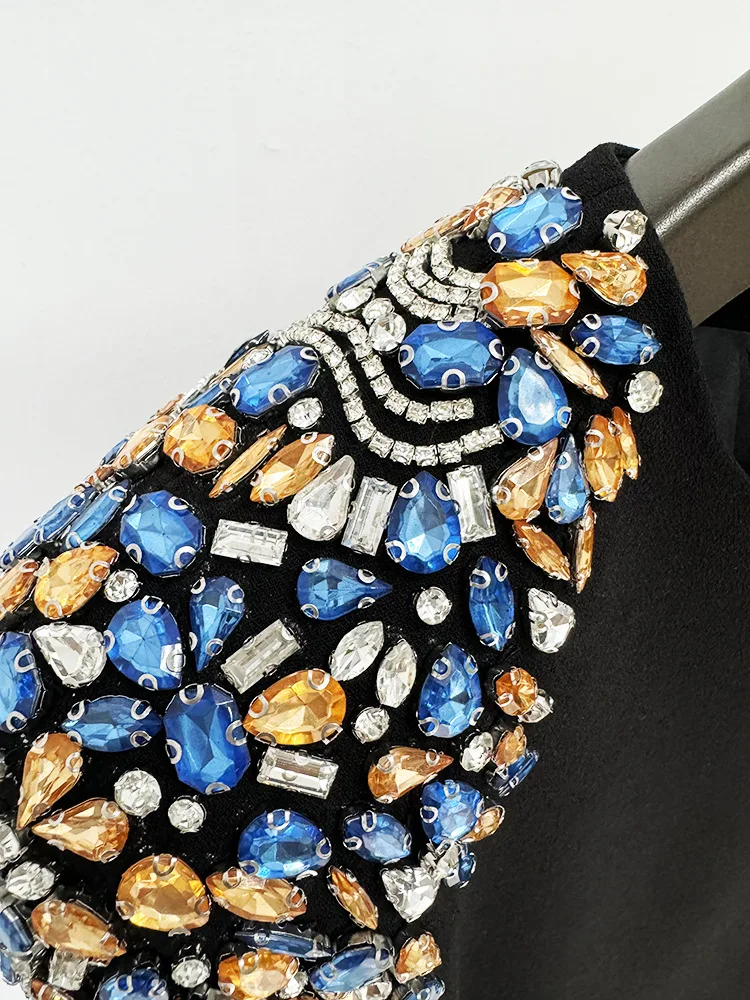 Crystal Beaded Cropped Tops Skirt Set