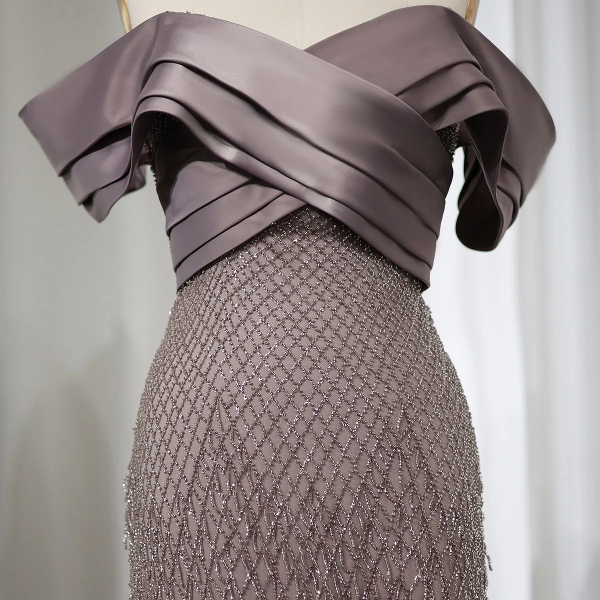Off Shoulder Design: The off shoulder neckline adds a touch of sophistication, making it a standout piece for weddings and formal parties.