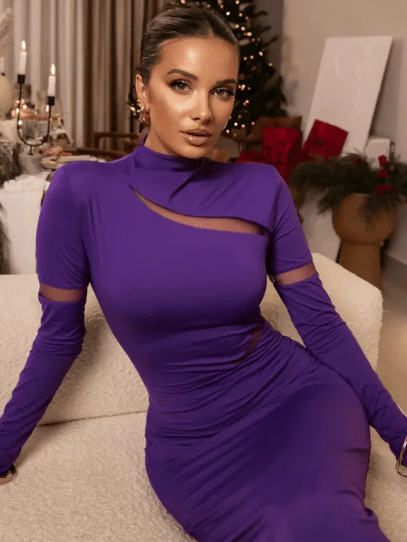 Turn heads with this stunning Purple Mesh Hollow Out Patchwork Bodycon Maxi Dress. Designed to accentuate your curves, this dress combines elegance with a bold touch of modern style. The mesh detailing and hollow-out patchwork create a sultry, eye-catching look perfect for evening events, parties, or special occasions.