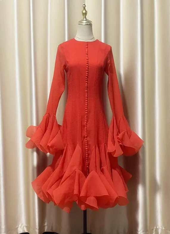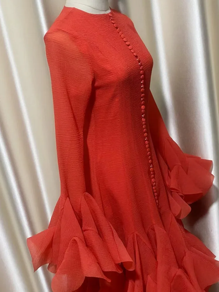 Ruffle Round Neck Flare Sleeves Mid Dress