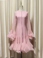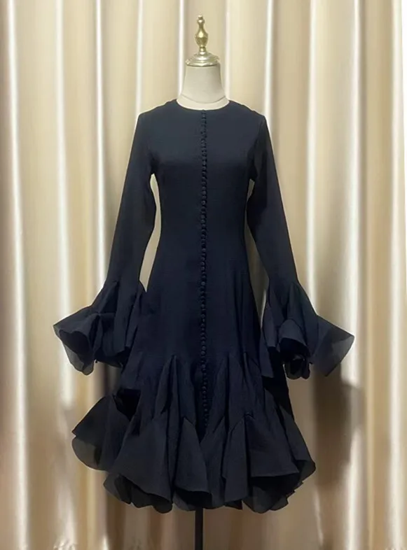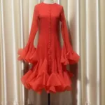 Add a touch of romance to your wardrobe with the Ruffle Round Neck Flare Sleeves Mid Dress. This stylish dress features a flattering round neckline and playful ruffle detailing, complemented by elegant flare sleeves for a graceful silhouette. The mid-length hem offers versatile wear, making it perfect for both casual outings and special occasions. Crafted from soft, breathable fabric, this dress ensures all-day comfort while keeping you effortlessly chic. Pair it with your favorite accessories for a look that’s both feminine and sophisticated.