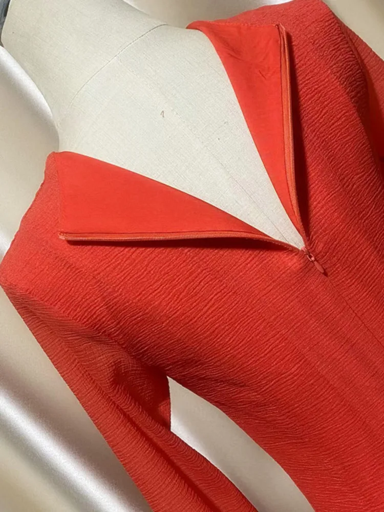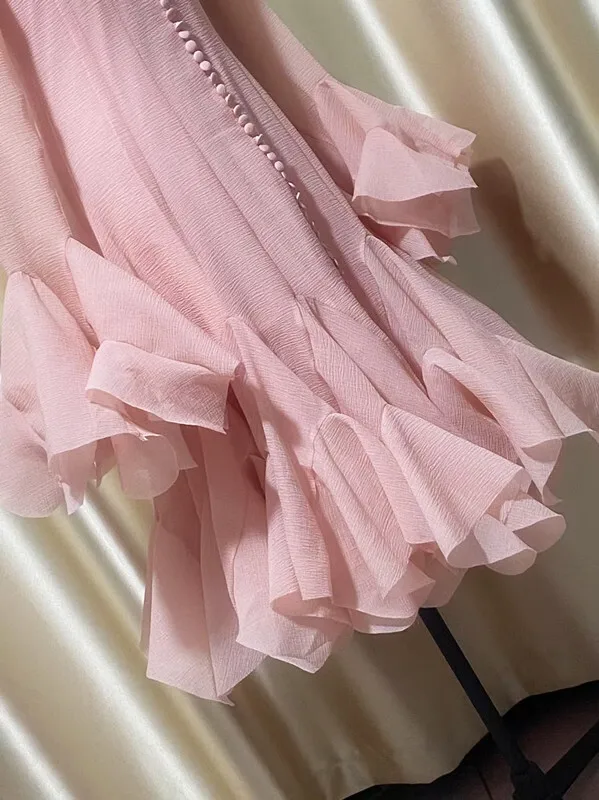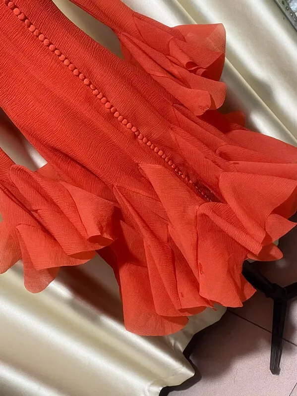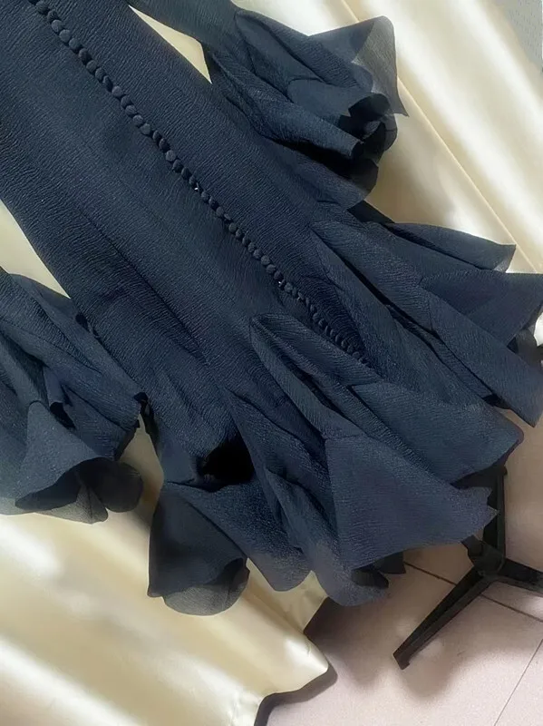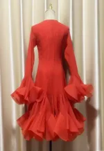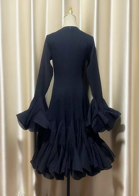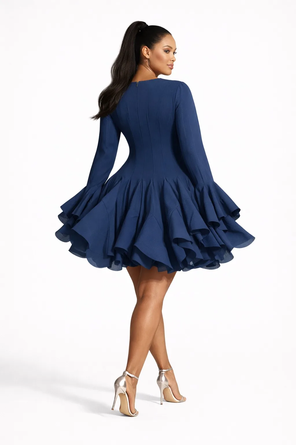 Women Long-Sleeved Elastic V-Neck Irregular Ruffled Elegant Cut Out Dress