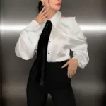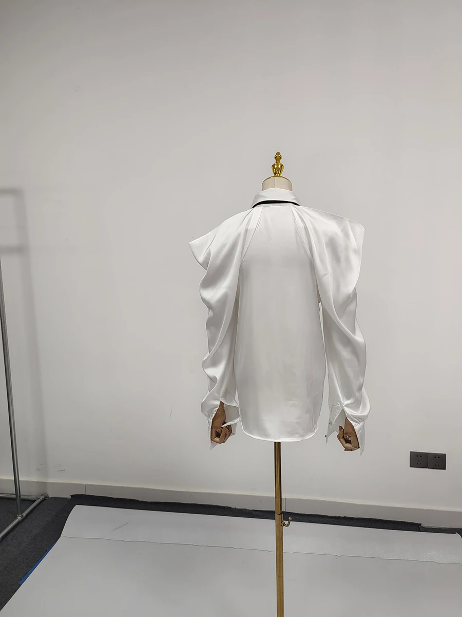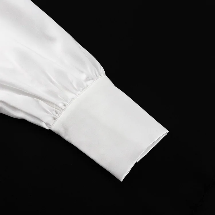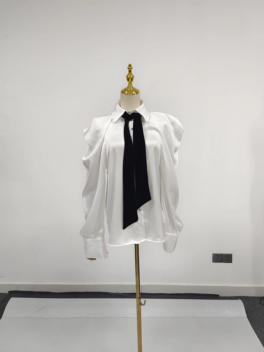 Women’s Silk Shirt Long Sleeve Flower Design Shirts Blouse Office Party Ladies Satin Silk Blouse Tops All Sizes Shirt Top