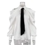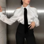 Elevate your style with the Solid Loose Spliced Hollow Out Blouse, offering a chic design with breathable cutouts for effortless sophistication.