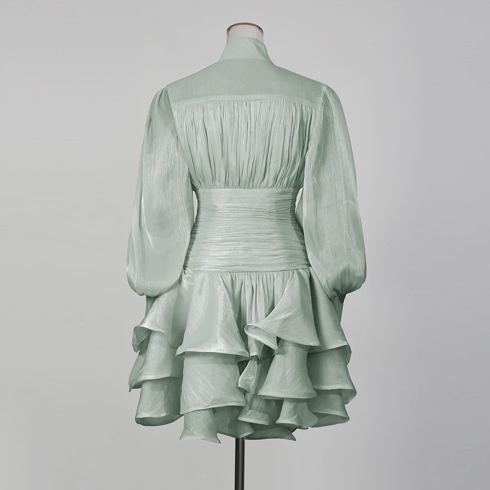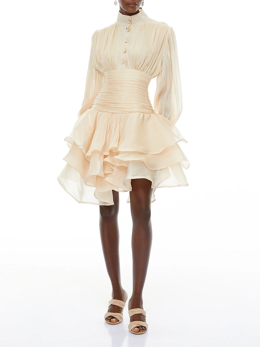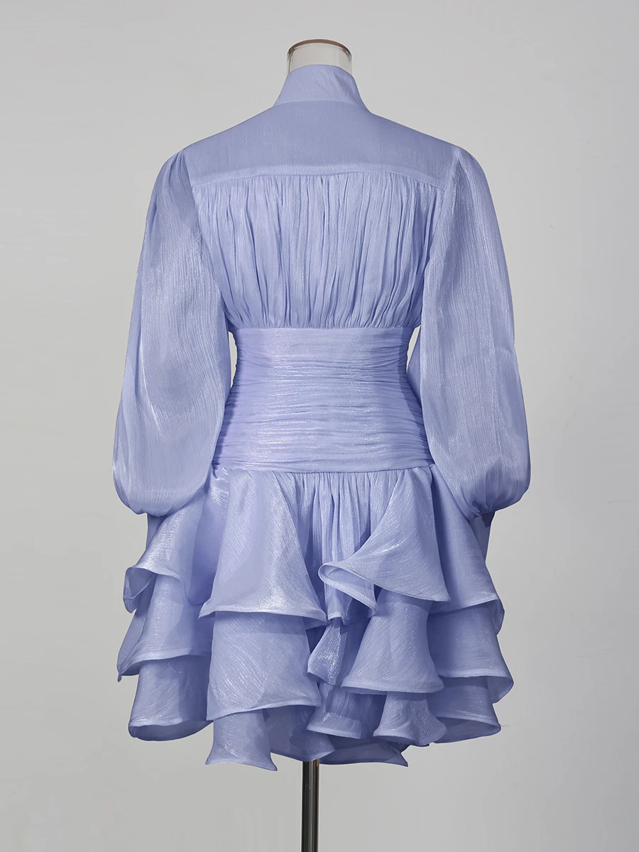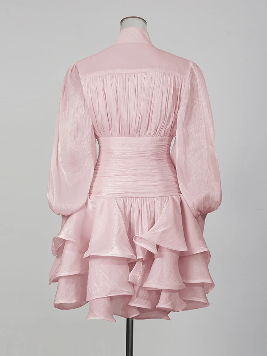 Playful, flirty, and perfectly on-trend, the Spliced Ruffles Folds High Waist Mini Dress is designed to make a statement. Featuring a flattering high-waist silhouette, this mini dress cinches at the narrowest part of your figure before cascading into a soft, folded skirt that moves beautifully with every step.