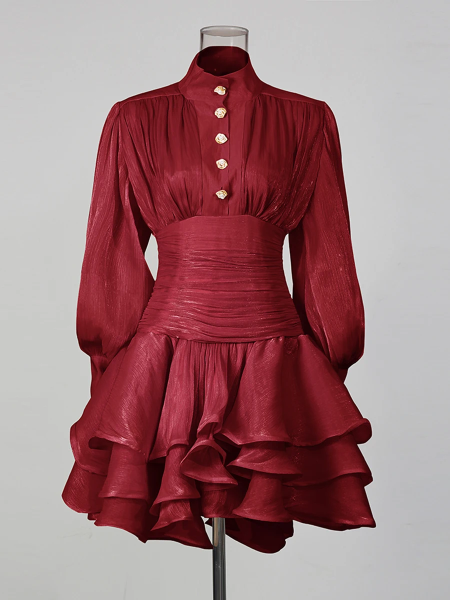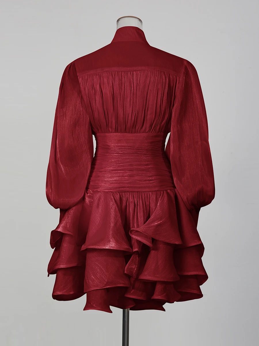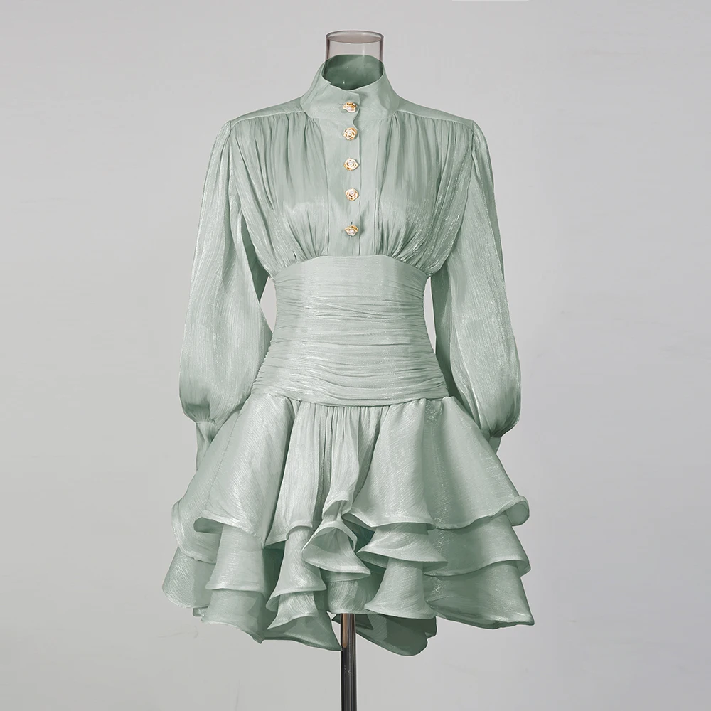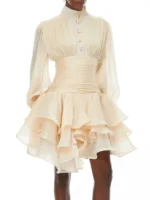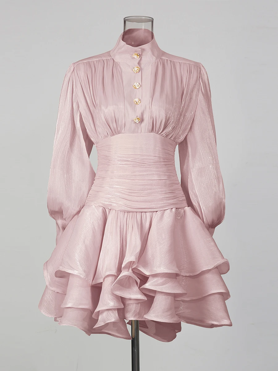 Playful, flirty, and perfectly on-trend, the Spliced Ruffles Folds High Waist Mini Dress is designed to make a statement. Featuring a flattering high-waist silhouette, this mini dress cinches at the narrowest part of your figure before cascading into a soft, folded skirt that moves beautifully with every step.
