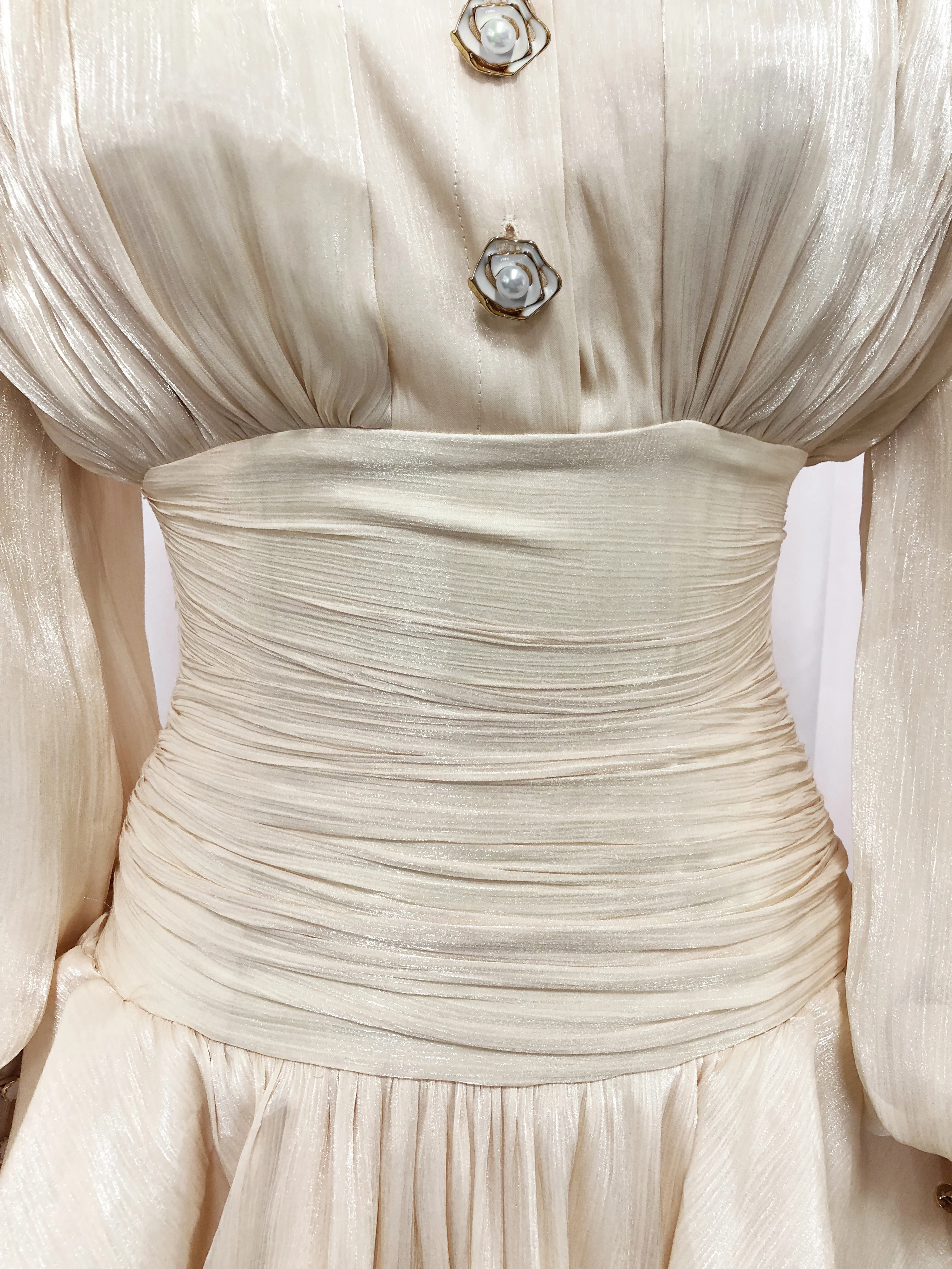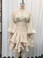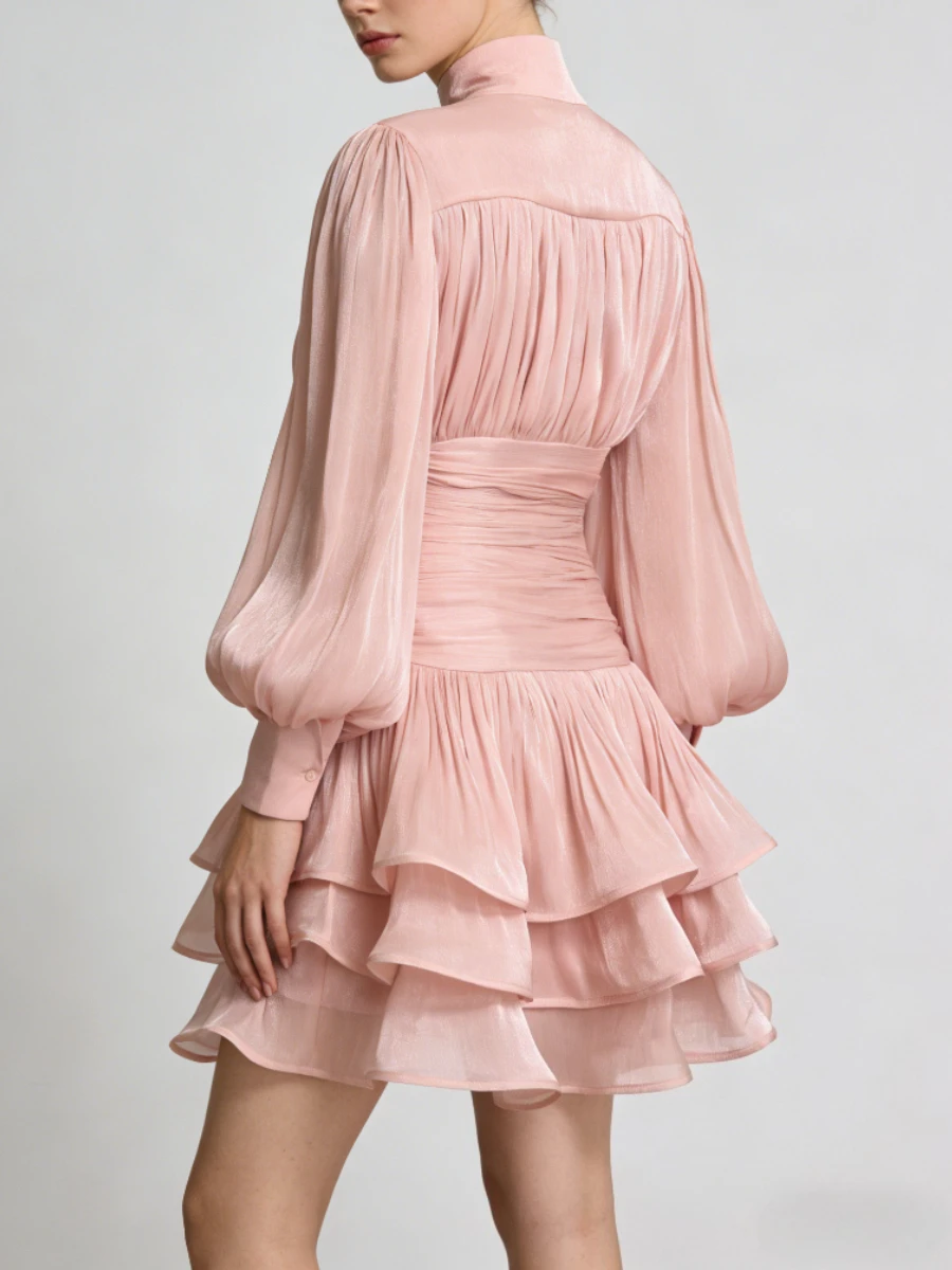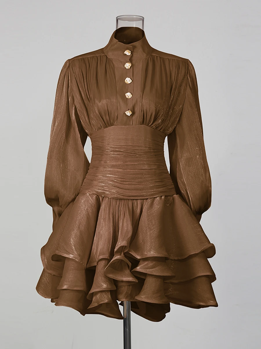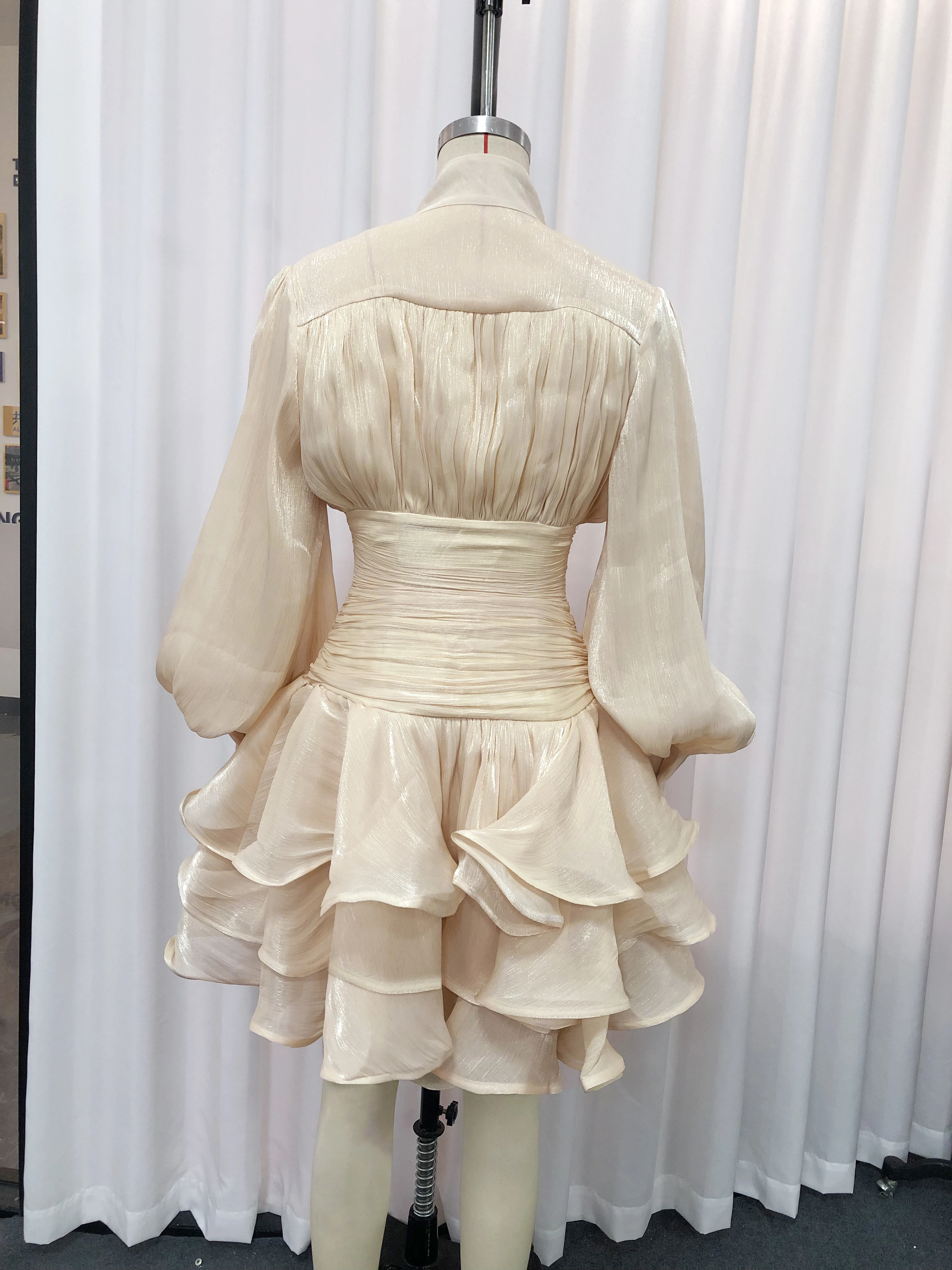 Playful, flirty, and perfectly on-trend, the Spliced Ruffles Folds High Waist Mini Dress is designed to make a statement. Featuring a flattering high-waist silhouette, this mini dress cinches at the narrowest part of your figure before cascading into a soft, folded skirt that moves beautifully with every step.