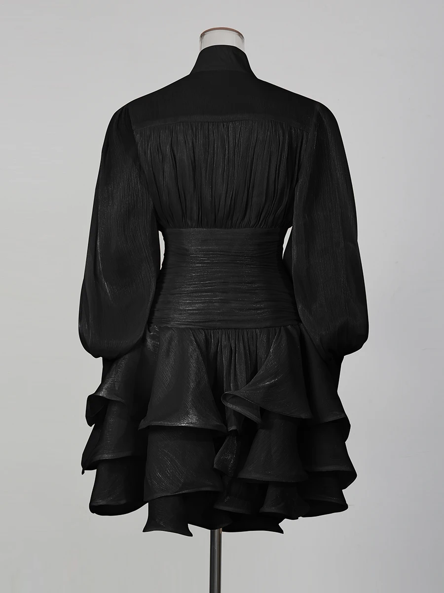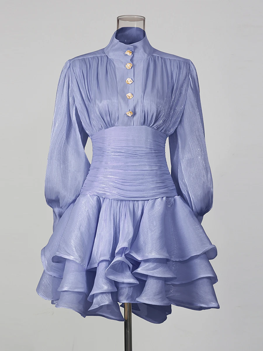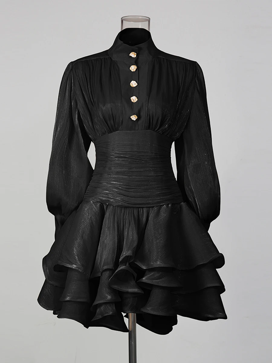Playful, flirty, and perfectly on-trend, the Spliced Ruffles Folds High Waist Mini Dress is designed to make a statement. Featuring a flattering high-waist silhouette, this mini dress cinches at the narrowest part of your figure before cascading into a soft, folded skirt that moves beautifully with every step.