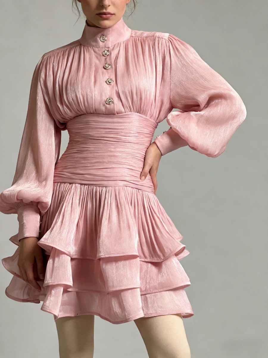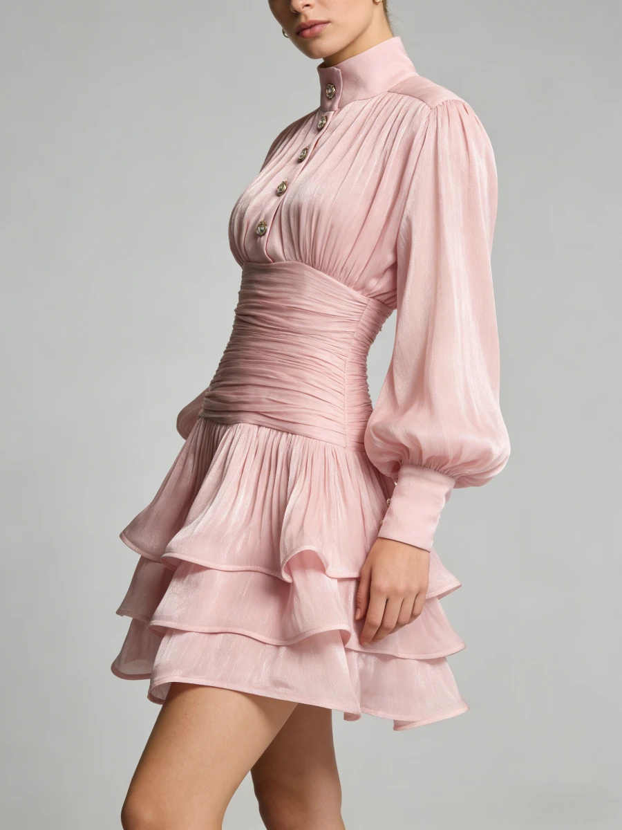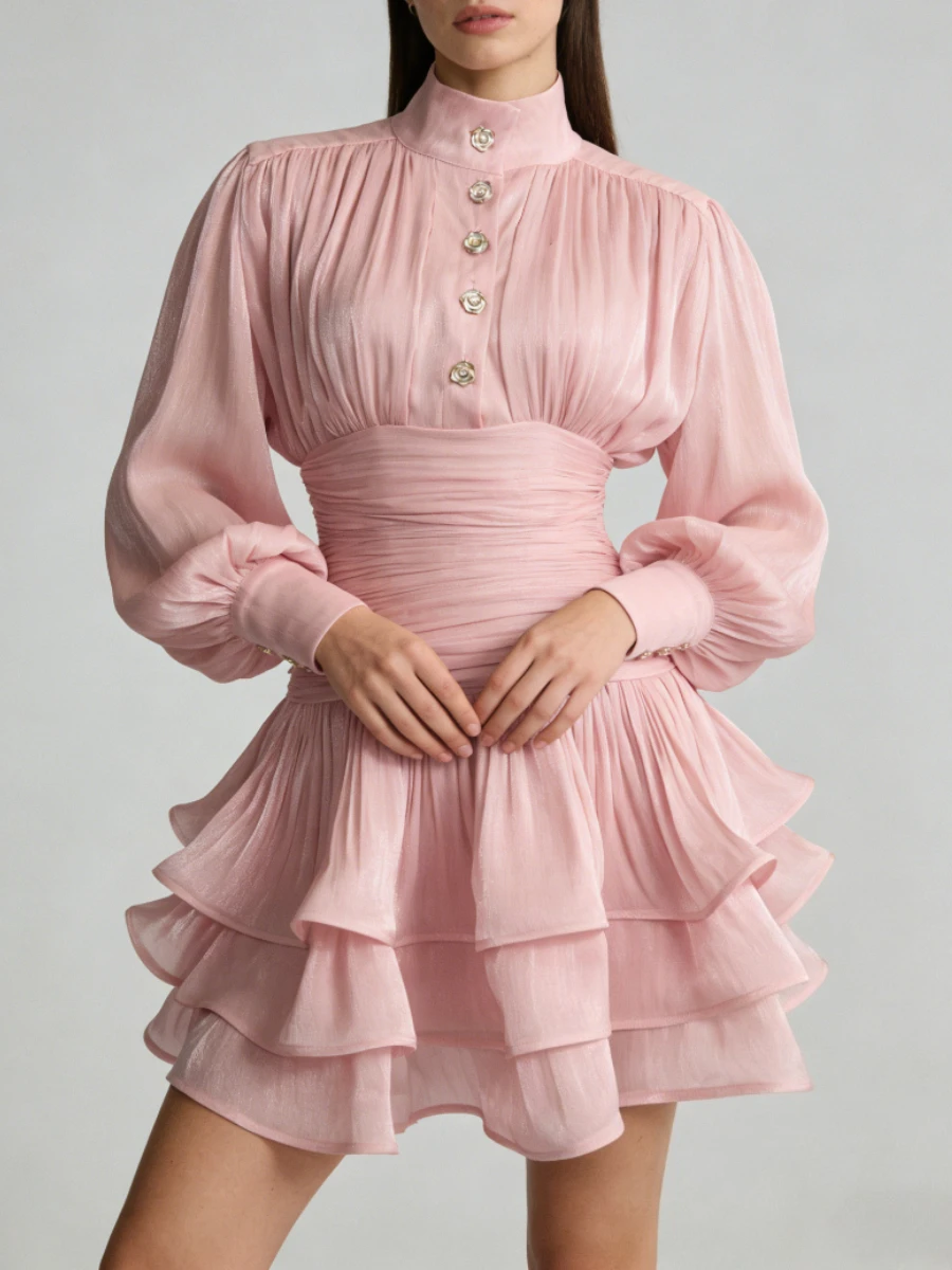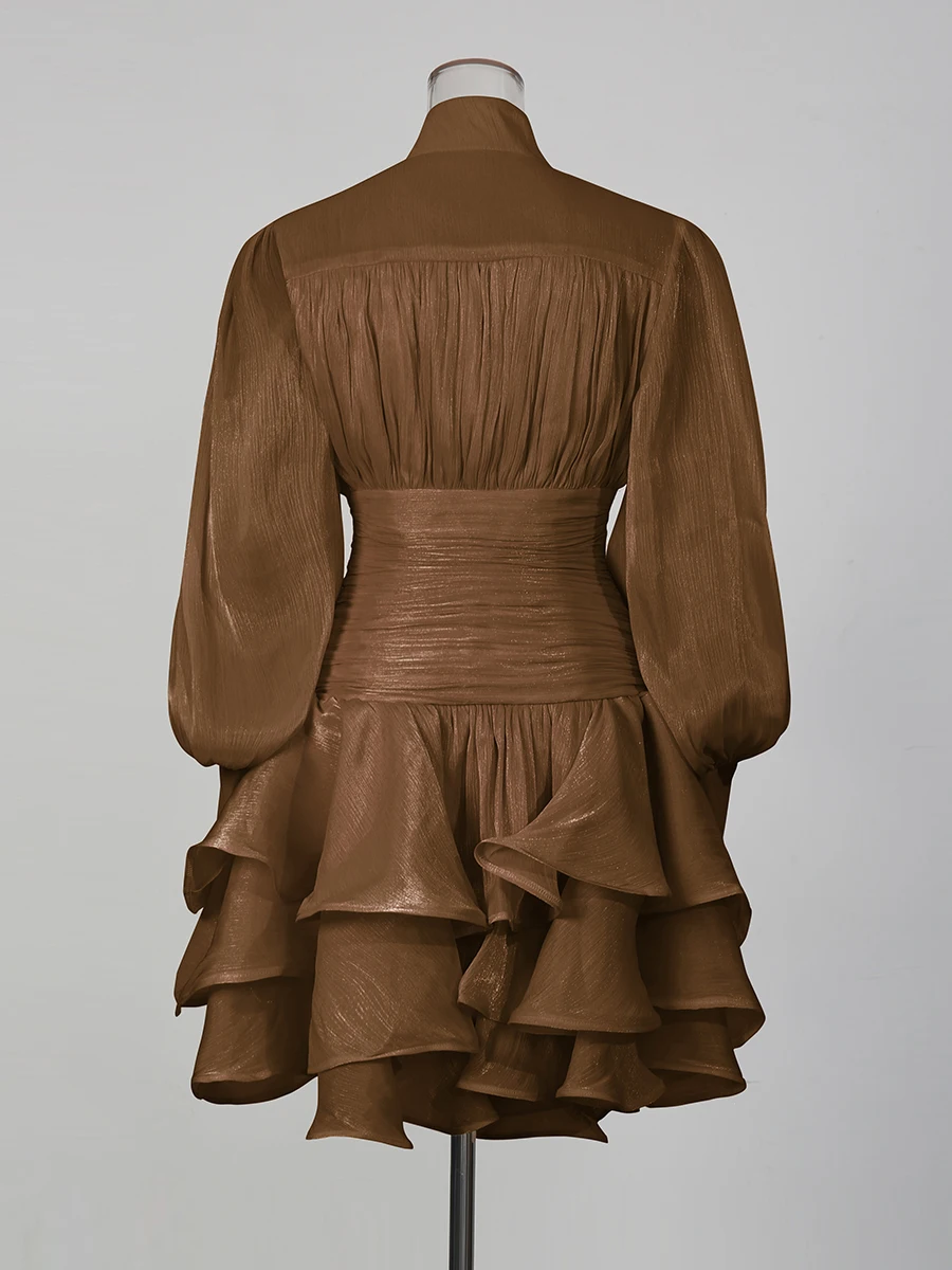 Playful, flirty, and perfectly on-trend, the Spliced Ruffles Folds High Waist Mini Dress is designed to make a statement. Featuring a flattering high-waist silhouette, this mini dress cinches at the narrowest part of your figure before cascading into a soft, folded skirt that moves beautifully with every step.