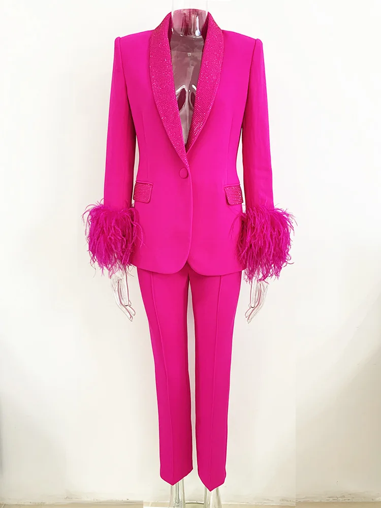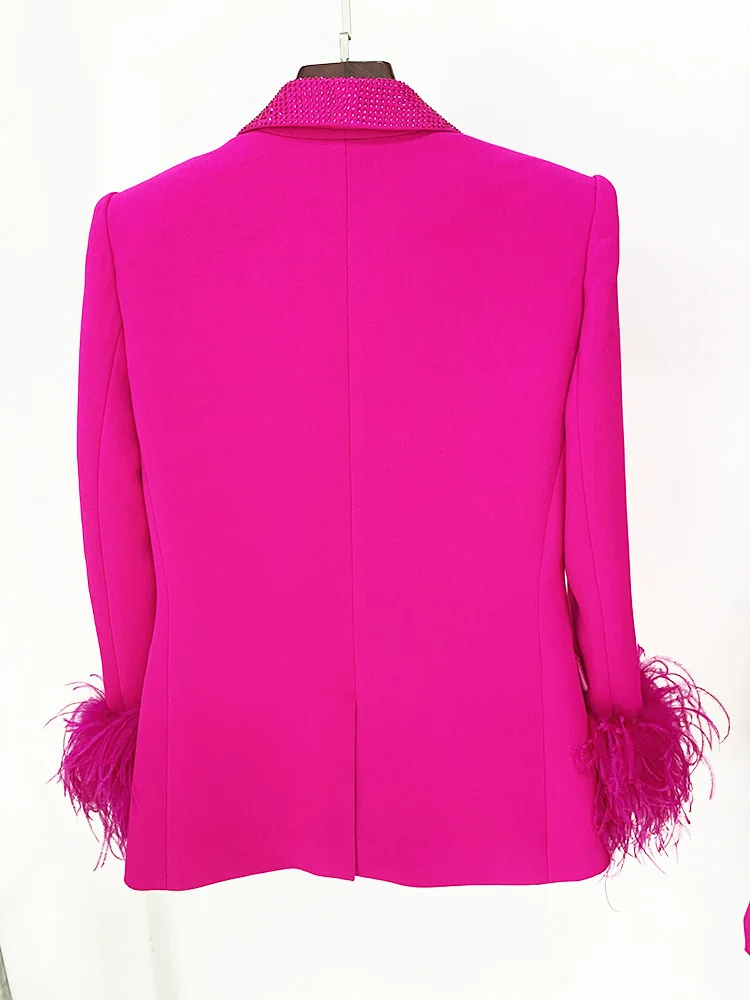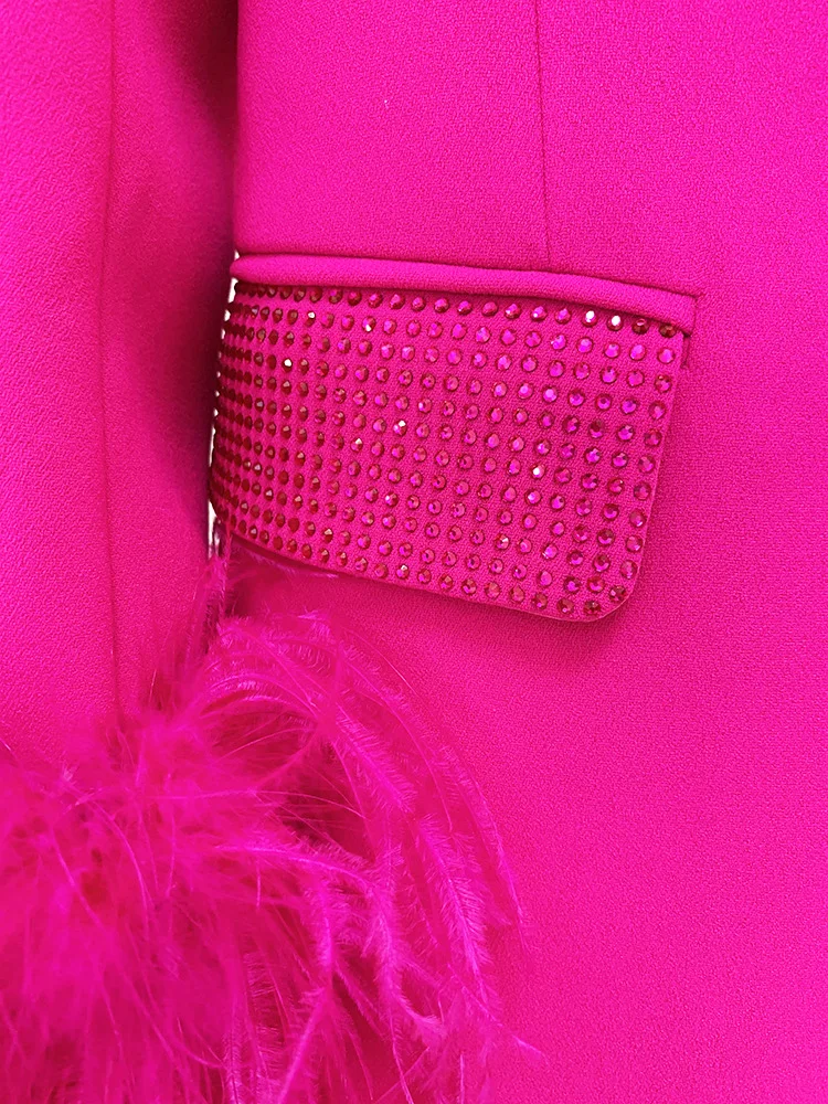 Two-Piece Pink Ostrich Feather Blazer Set