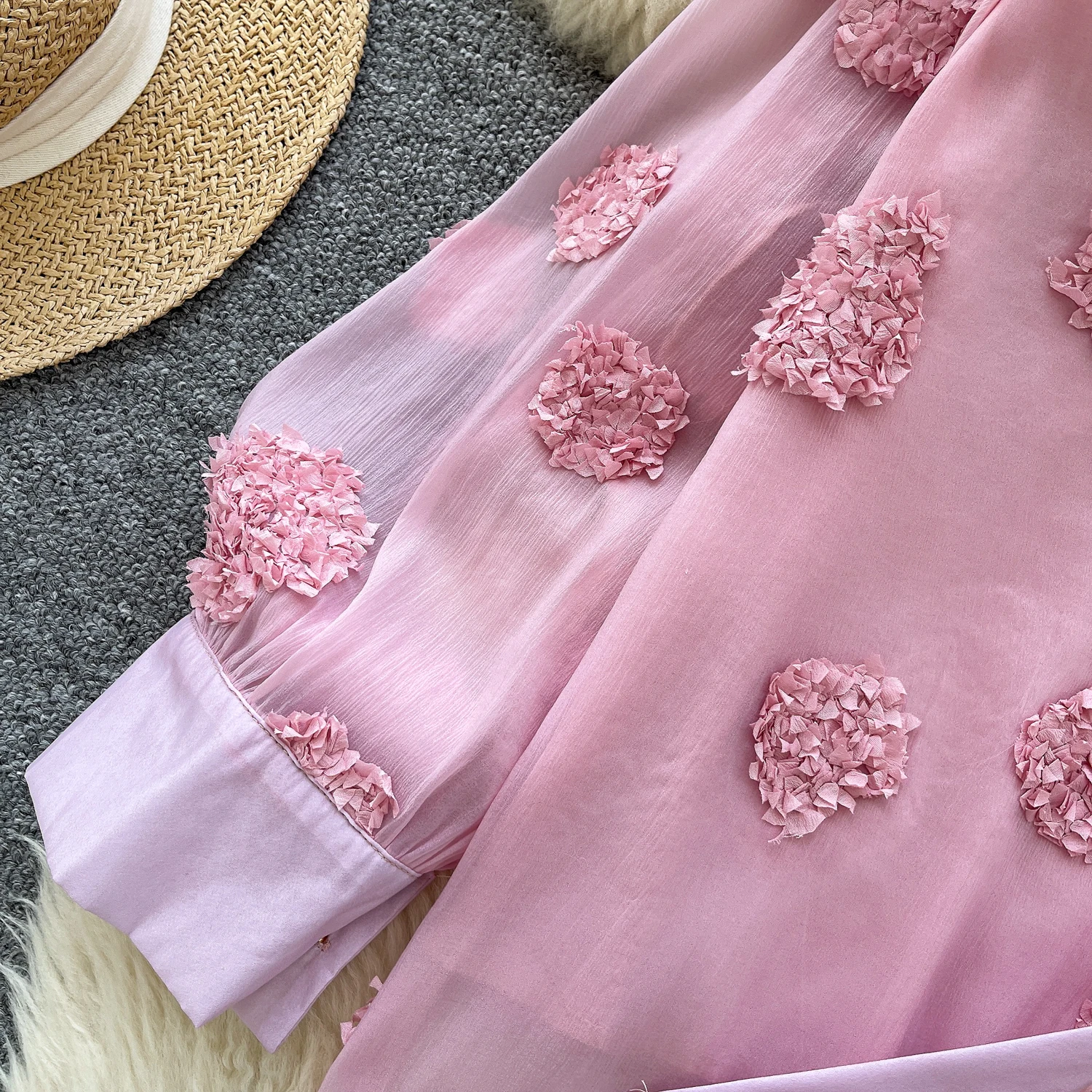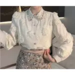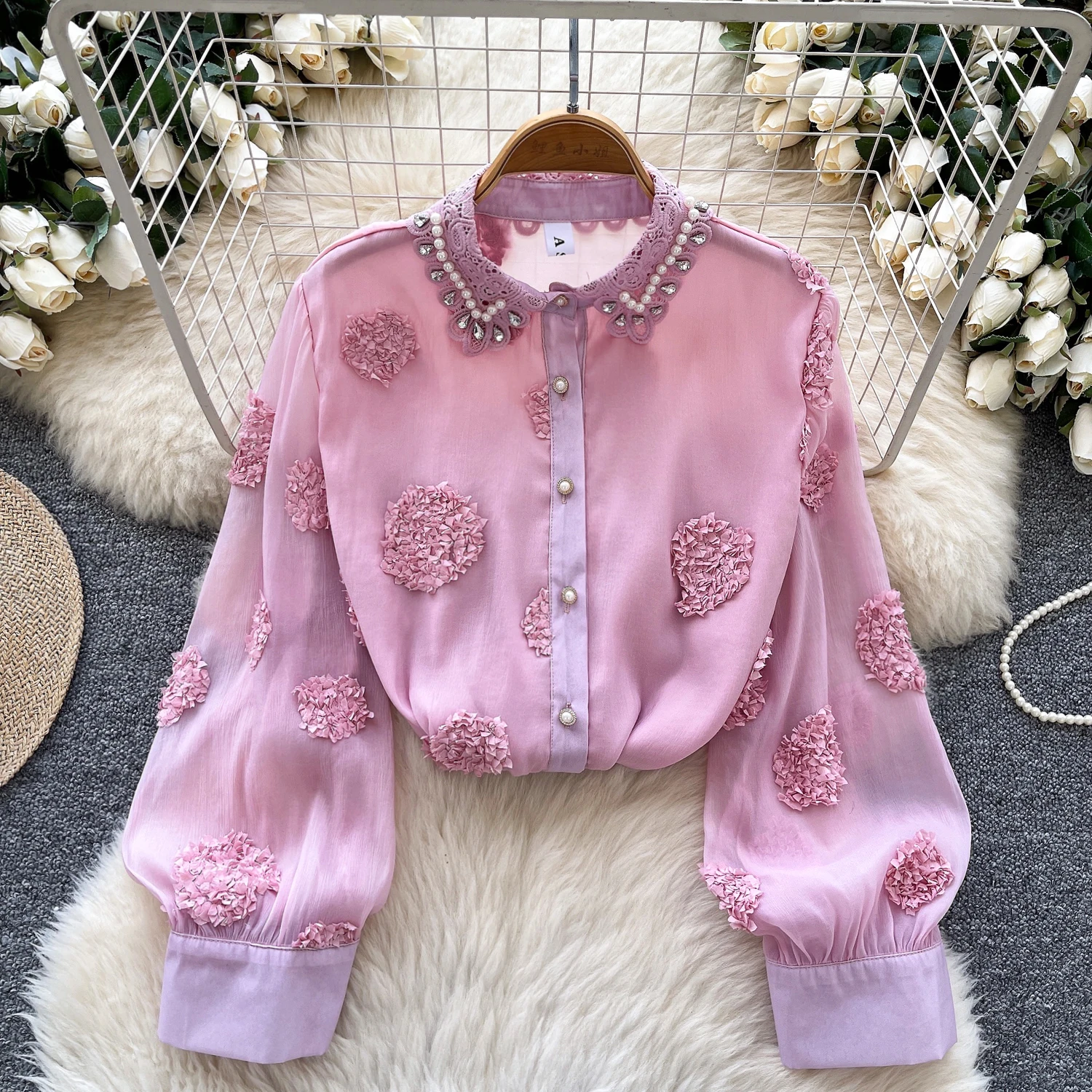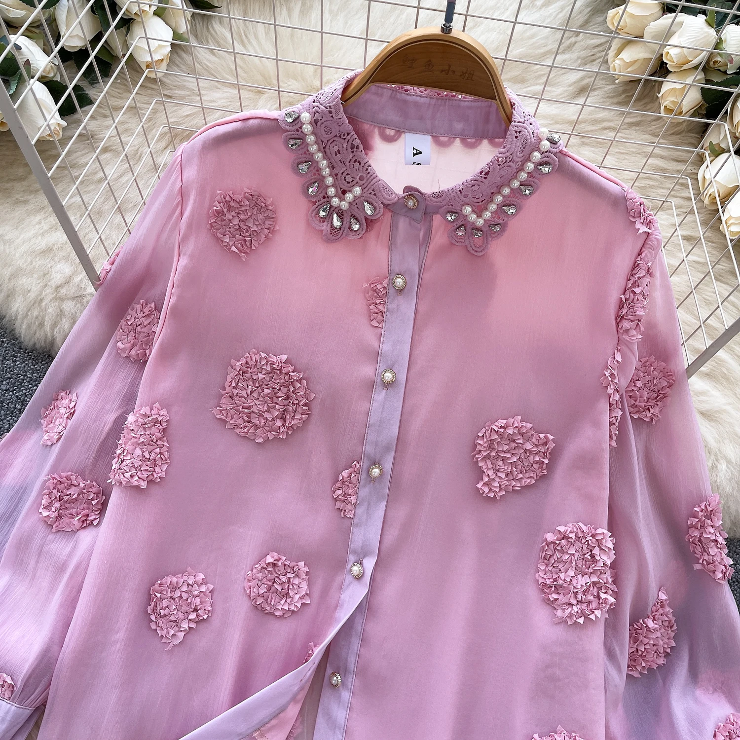 Beaded Sequined Flowers Stitch Mesh Shirts