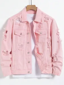 Pink ripped denim jacket