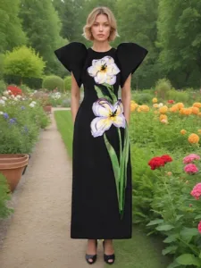 Splicing Flowers High Waist Evening Dress
